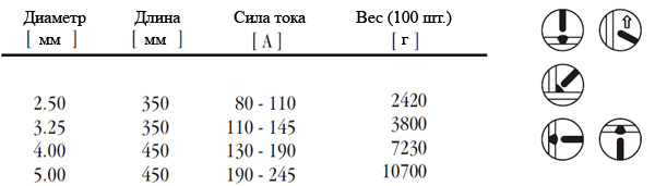Режим сварки : [ DC (+) ] | Сварочные положения