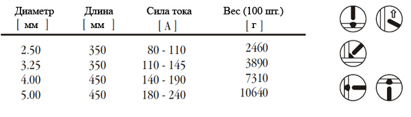 Режим сварки : [ DC (+) / AC (Uxx min. 65В ] | Сварочные положения